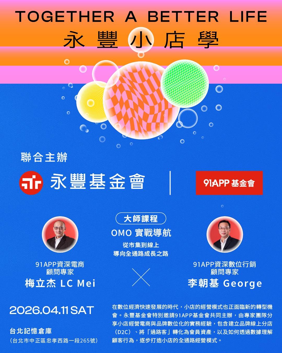 永豐基金會 x 91APP基金會聯合主辦 4月大師課程─OMO 實戰導航 從市集到線上 導向全通路成長之路
